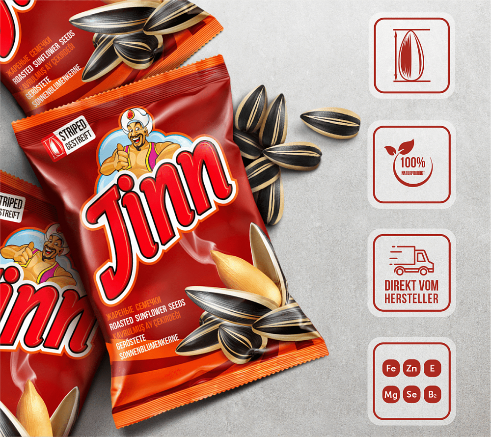 Es sollte viele gute Sonnenblumenkerne geben. Für diejenigen, die genauso denken, haben wir uns ein besonderes Produkt ausgedacht – «Jinn Striped» .